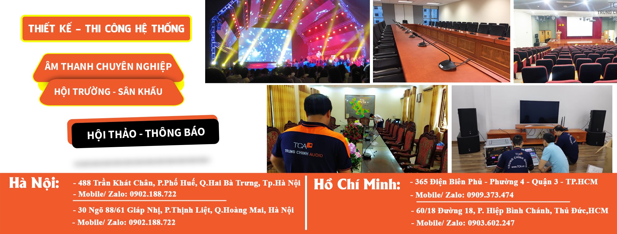 Trung Chính Audio hay còn gọi là TCA , chuyên phân phối các sản phẩm về âm thanh: âm thanh sân khấu – hội trường, âm thanh thông báo , âm thanh hội thảo. Được thành lập từ năm 1994, chúng tôi phân phối sản phẩm của các hãng vang danh trên thế giới như Yamaha, JBL, Bosch, TOA, Shure, Sennheiser.. TCA đã nhận được nhiều sự tin tưởng của quý khách hàng trên toàn cả nước. Chúng tôi mang âm thanh, ánh sáng đến tập đoàn, tổng công ty, nhà máy, hệ thống cơ quan chính quyền .….